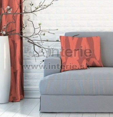 Obliečka na vankúšik z metrážné látky. Zapínanie je pomocou zipsového uzáveru. Vzor na vankúšiku sa môže líšiť od vyobrazeného. Látka má výrazný moderný vzor v oranžovej farbe.