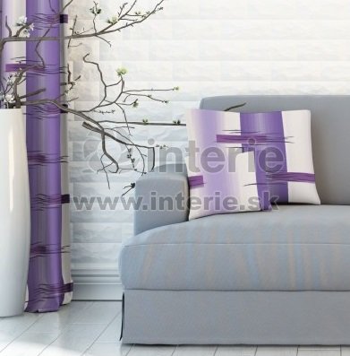 Obliečka na vankúšik z metrážné látky. Zapínanie je pomocou zipsového uzáveru. Vzor na vankúšiku sa môže líšiť od vyobrazeného. Látka má moderný vzor v fialovej farbe.