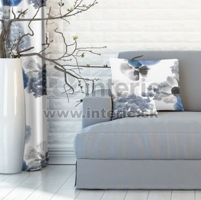 Obliečka na vankúšik z metrážné látky. Zapínanie je pomocou zipsového uzáveru. Vzor na vankúšiku sa môže líšiť od vyobrazeného. Farba látky je svetlá s výrazným modro-šedým kvetinovým vzorom.