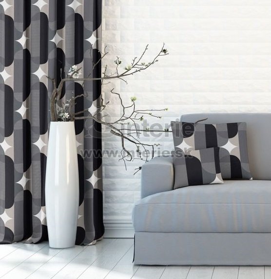 Obliečka na vankúšik z metrážné látky. Zapínanie je pomocou zipsového uzáveru. Vzor na vankúšiku sa môže líšiť od vyobrazeného. Závesoviny má šedo-čierno-béžovú farbu.
