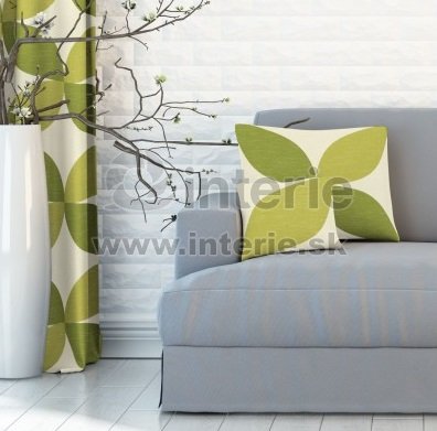 Obliečka na vankúšik z metrážné látky. Zapínanie je pomocou zipsového uzáveru. Vzor na vankúšiku sa môže líšiť od vyobrazeného. Látka s výrazným vzorom v zelených farbách.